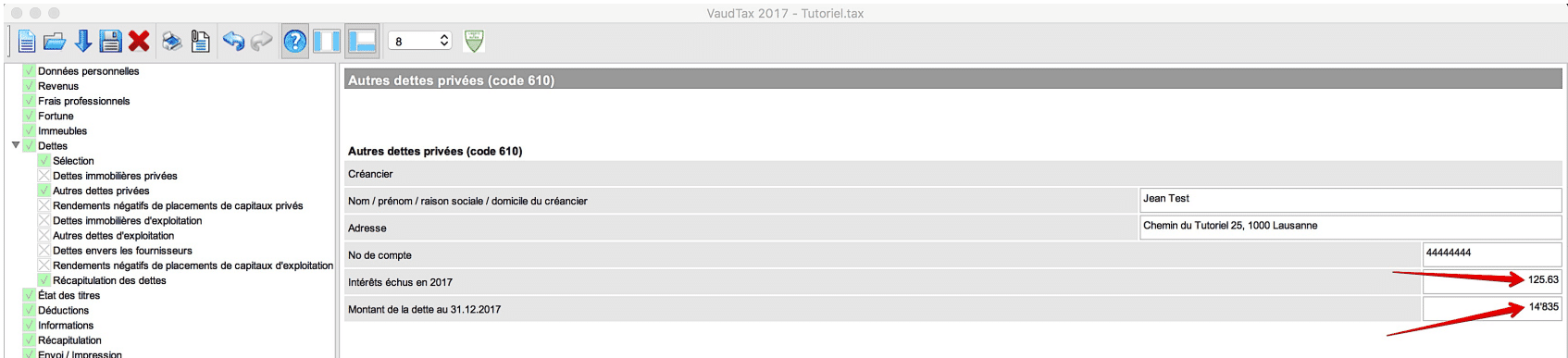 Prema sustavu VaudTax, sve što trebate učiniti je ispuniti sljedeće podatke kako biste imali koristi od svoje porezne uštede u odnosu na vaše kredite.